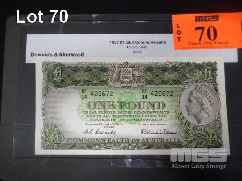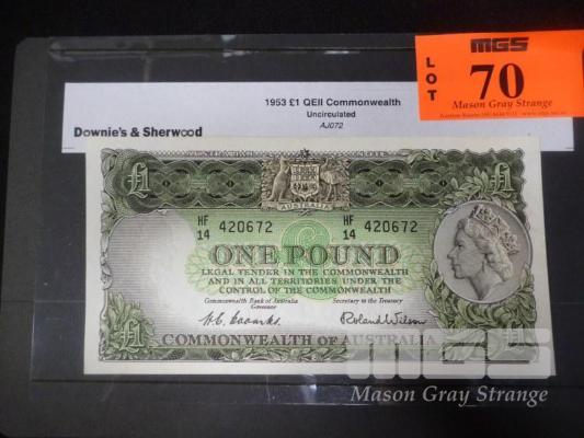 COMMONWEALTH OF AUSTRALIA, 1953, ONE POUND BANKNOTE, COOMBS/WILSON, HF14 420672, Unc