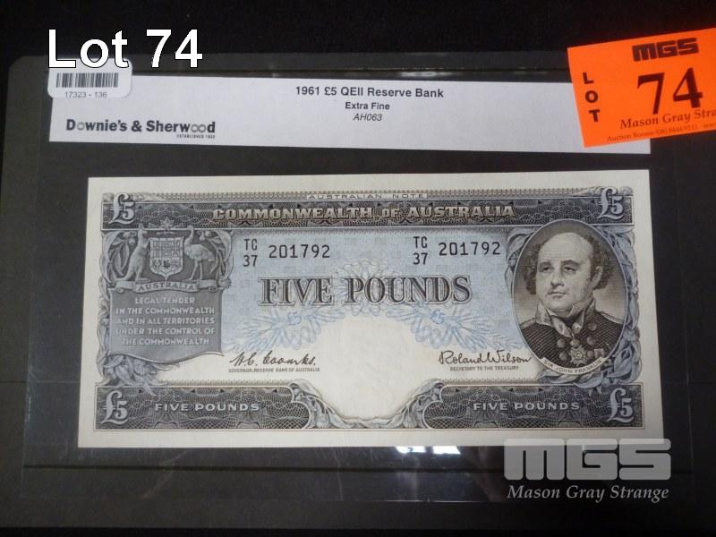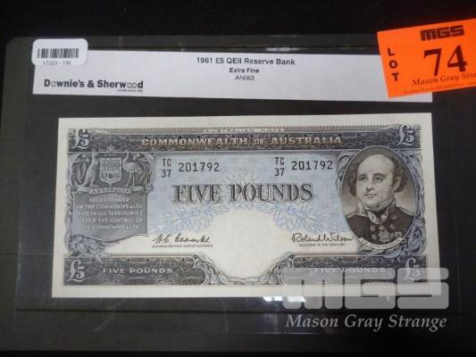 COMMONWEALTH OF AUSTRALIA, 1961, FIVE POUNDS BANKNOTE, COOMBS/WILSON, TC37 201792