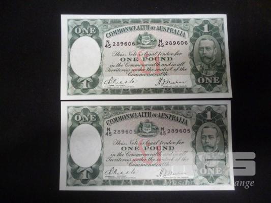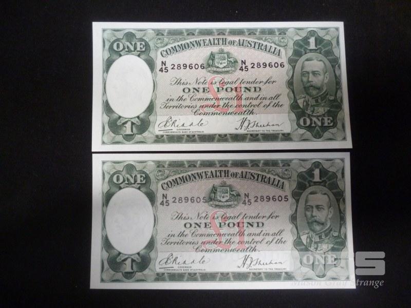 1933 2 x 1 POUND NOTES CONSECUTIVE RIDDLE SHEEHAN APPEAR UNC