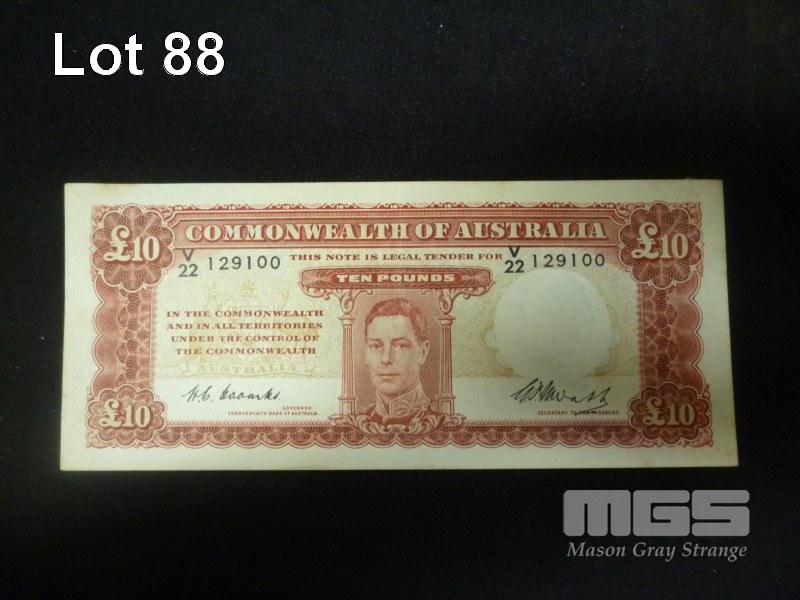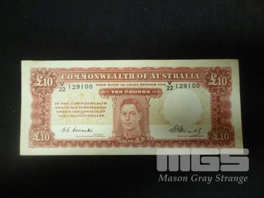 1949 10 POUND NOTE RARE LAST PREFIX "V22" COOMBS WATT HIGH GRADE