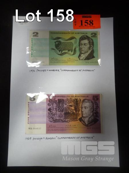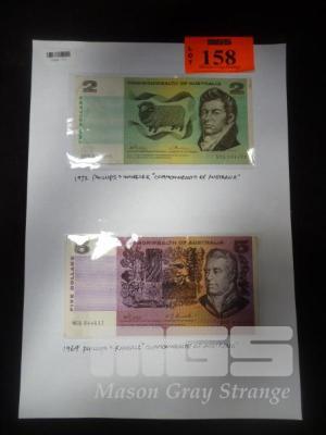 COMMONWEALTH OF AUSTRALIA, 1972, $2 BANKNOTE, PHILLIPS/WHALAN, GYQ 506398 COMMONWEALTH OF AUSTRALIA, 1969 $5 BANKNOTE, PHILLIPS/RANDELL, NGB 044637