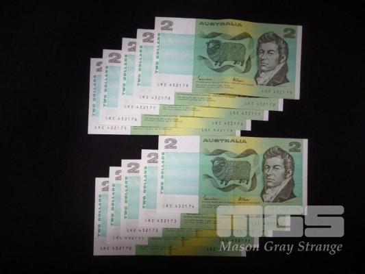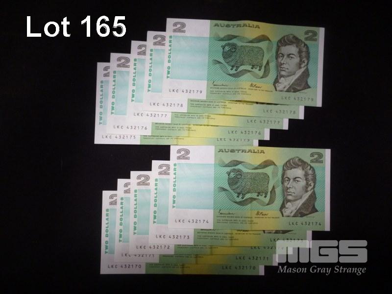 10 x CONSECUTIVE $2.00 PAPER BANK NOTES, JOHNSTONE/FRASER, LKC432170-179