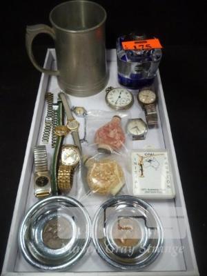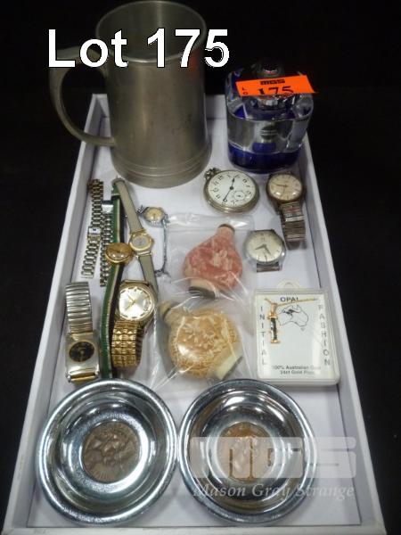 ASSORTED WATCHES, DATSUN PIERE CARDAJ CIGARETTE LIGHTER, BRISTISH AEROSPACE SEA HARRIER PEWTER MUG, ETC