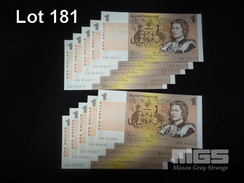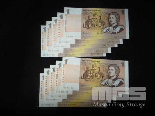 1982 10 x $1.00 CONSECUTIVE NOTES JOHNSTON STONE UNC