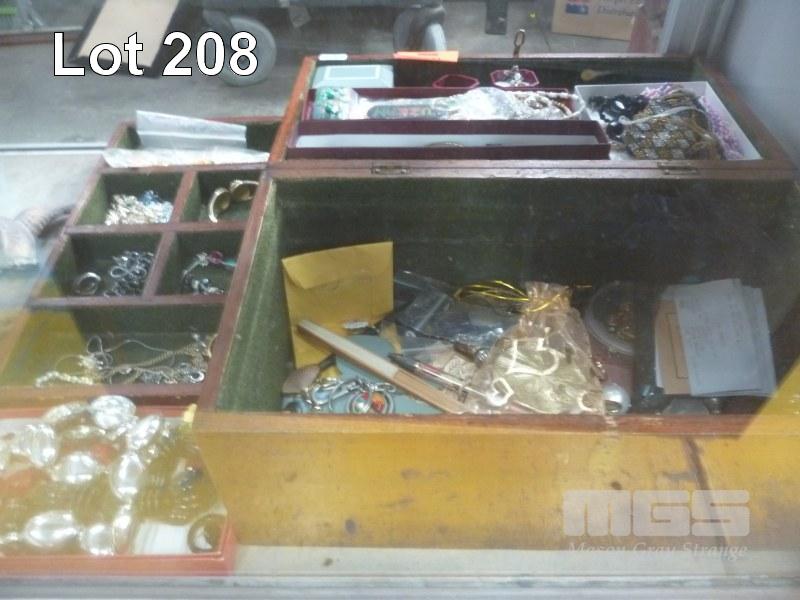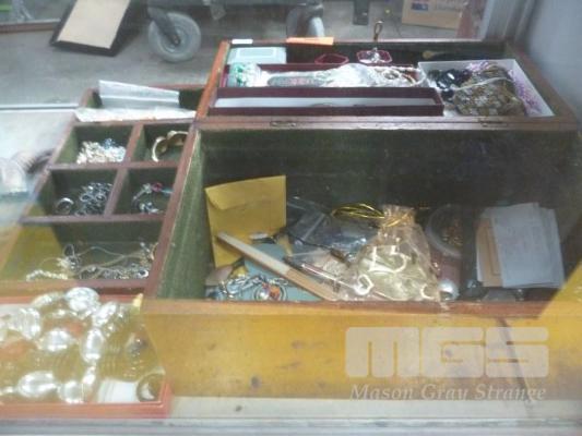 TIMBER JEWELLERY BOX WITH ASSORTED DRESS JEWELLERY