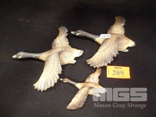 SET 3 PORCELAIN GRADUATING DUCKS, (SOME CHIPS & SIGNS OF REPAIR)