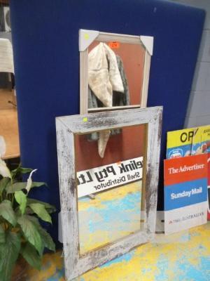 2 X WALL MIRRORS, 1 X RUSTIC TIMBER FRAME 1 X WHITEWASH FRAME