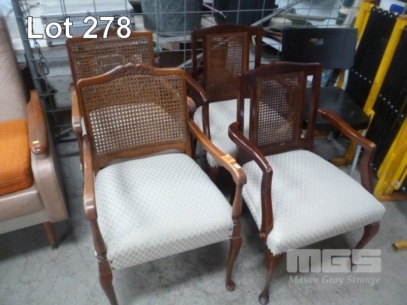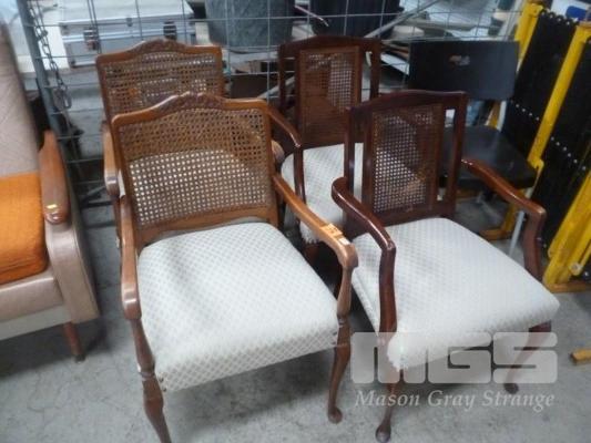 2 X PAIRS OF TIMBER ARM CHAIRS, BEIGE/GREEN/RED PATTERNED FABRIC, CABRIOLE LEGS