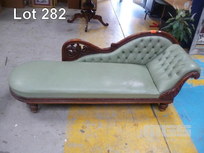 LOVERS LOUNGE, ORNATE CARVED, GREEN LEATHER, DEEP BUTTON