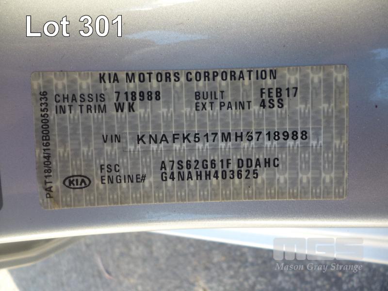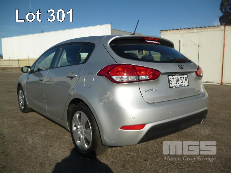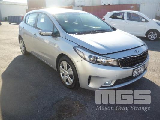 2017 KIA CERATO HATCH REG: S738 BTR (SA) (EXPIRED) VIN: KNAFK517MH5718988 ENG: G4NAHH403625 ODO: 14,464 KM 4 CYL, 4 SPEED AUTOMATIC, UNLEADED, SILVER, 5 DOORS, 5 SEAT, ABS, AIR BAG, AIR CON, BLUETOOTH, CENTRAL LOCKING, CRUISE CONTROL, IMMOBILISER, POWER STEERING, POWER WINDOWS, SPARE WHEEL, REVERSING CAMERA & SENSORS (WITH 2 KEY/S, WITH OWNER'S MANUAL, WITH SERVICE BOOKS) CONDITION: PASSENGER SIDE REAR BUMPER - DAMAGED - SCRATCHES