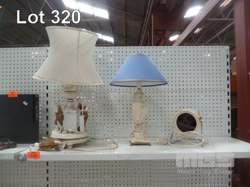 MARBLE TABLE LAMP, CERAMIC TABLE LAMP, (REQUIRES REPAIR) & HEAT LAMP