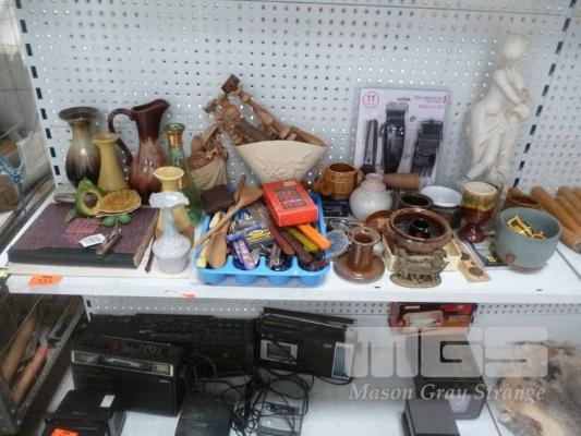 ASSORTED HOMEWARES, VASES, CUTLERY, BOWLS, ETC