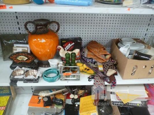 ASSORTED HOMEWARES, CAST IRON DOOR STOP, TIES, ETC