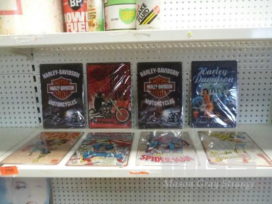 10 x REPRODUCTIN SCREEN PRINT TIN SIGNS, HARLEY DAVIDSON & MARVEL COMICS RELATED