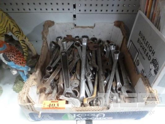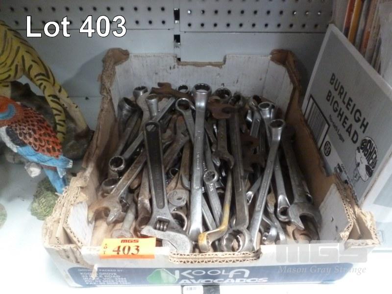 COLLECTION OF RING/OPEN END SPANNERS, SHIFTING SPANNER, ETC