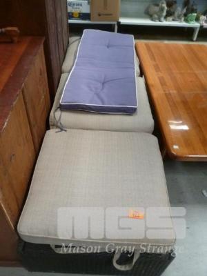 OUTDOOR LOUNGE, GREY/BROWN PADDED CUSHION WITH ADJUSTABLE HEAD REST