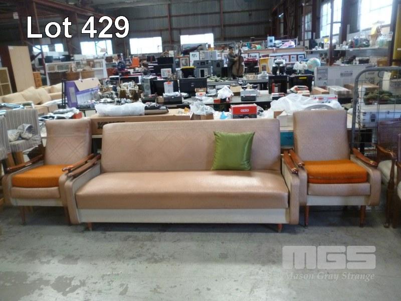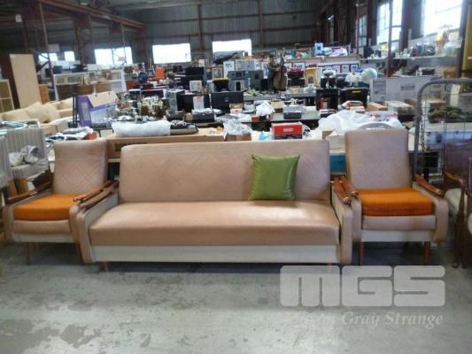 ART DECO 3 PIECE VINYL LOUNGE SUITE INC 3 SEATER SOFA LOUNGE & 2 x ARM CHAIRS
