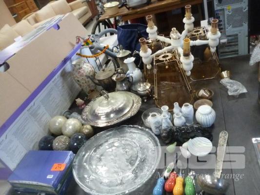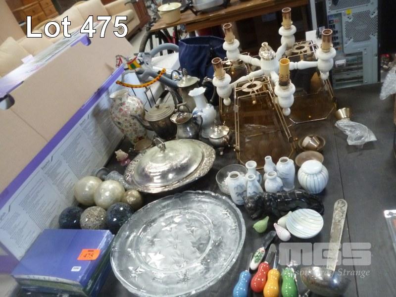 ASSORTED EPNS SERVINGWARE, LIGHT FITTING, VASES, ETC