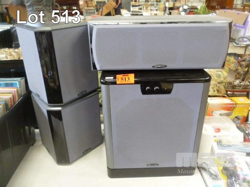 SET DYNAMICS SURROUND SOUND SPEAKERS INCLUDING SUB WOOFER, CENTRE & PAIR OF CORNER SPEAKERS