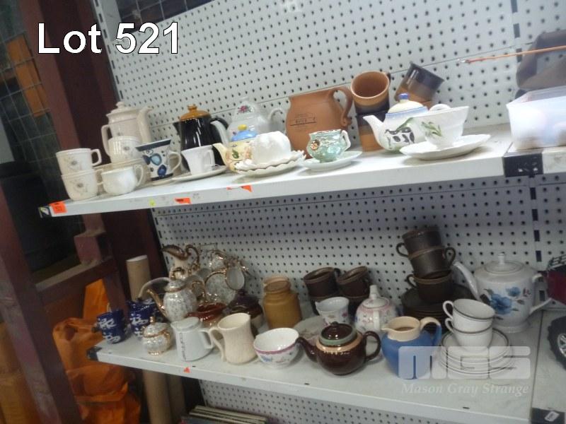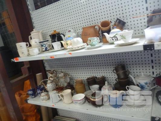 2 x SHELVES TEAPOTS & TEA CUPS