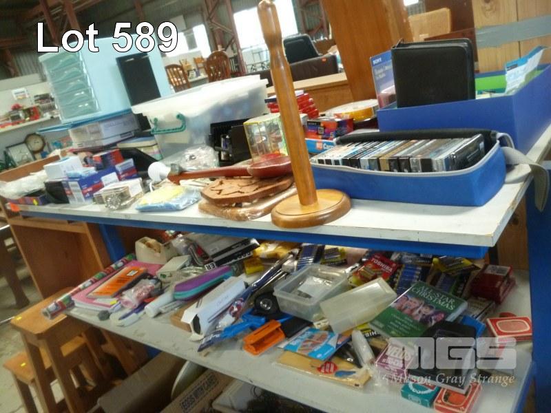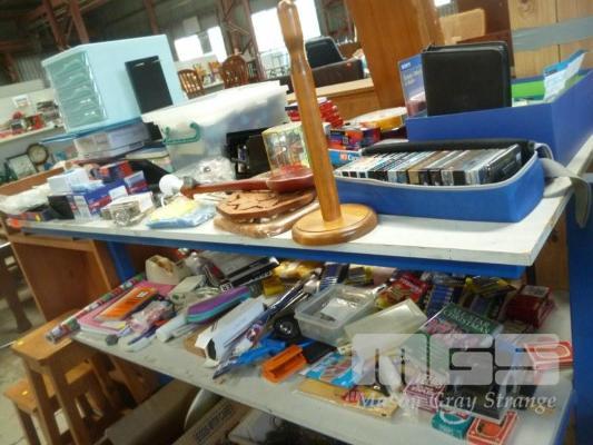 ASSORTED STATIONERY SUPPLIES, BATTERIES, CASSETTES, ETC, 2 X SHELVES