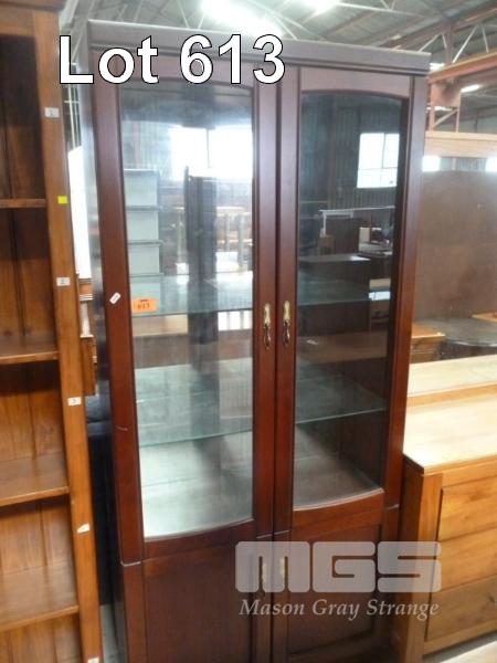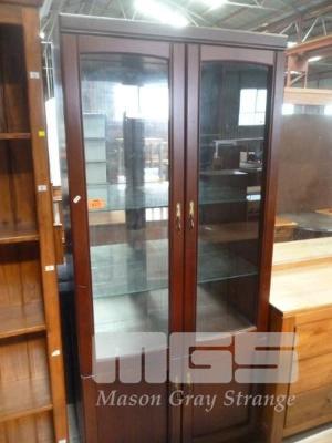 MAHOGANY DISPLAY CABINET, 2 x DOOR UNDERSTORAGE & 3 x GLASS SHELVES