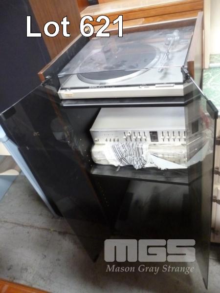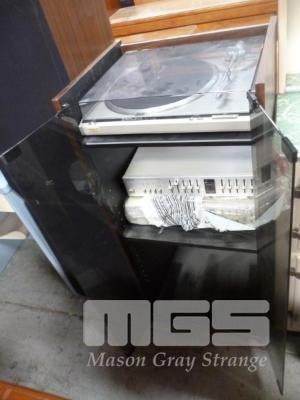 STEREO CABINET CONTAINING TECHNICS TURNTABLE 2 X EQUALISERS & FLOOR SPEAKERS