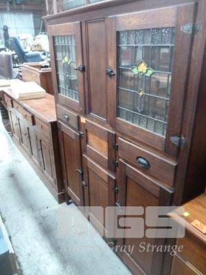 DECO LEADLIGHT FRONTED KITCHEN DRESSER, 5 DOOR, 2 DRAWER