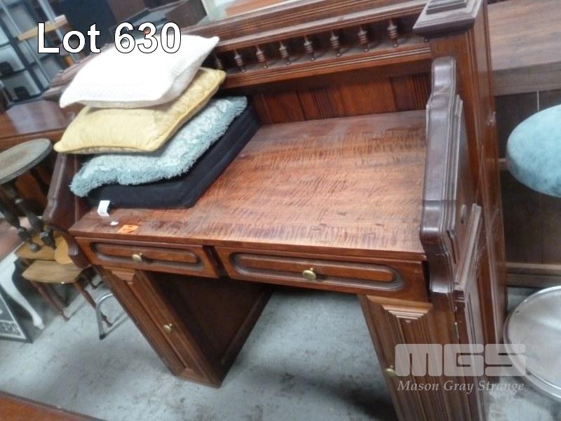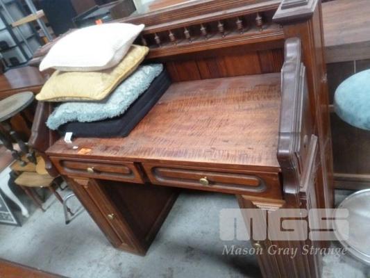 SOLID TIMBER WRITING DESK, EDWARDIAN STYLE, 2 DRAWER WITH 2 DOOR UNDERSTORAGE & GAS LIFT CHAIR
