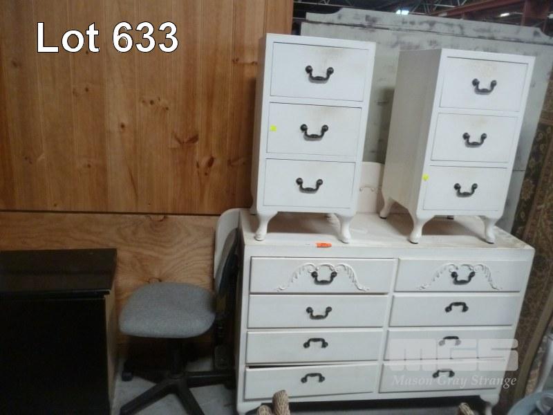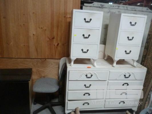 BEDROOM SUITE, 6 DRAWER CHEST, PAIR OF BEDSIDE CABINETS & HEADBOARD