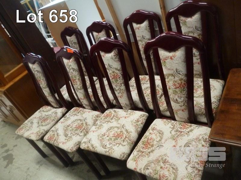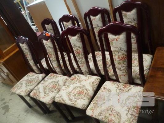 SET 8 DINING CHAIRS, ROSE STAIN TIMBER, FLORAL FABRIC