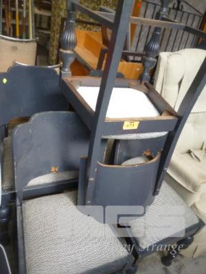 SET OF 4 TIMBER FRAMED GREY PAINTED COMFY BACKED DINING CHAIRS WITH PADDED SEAT