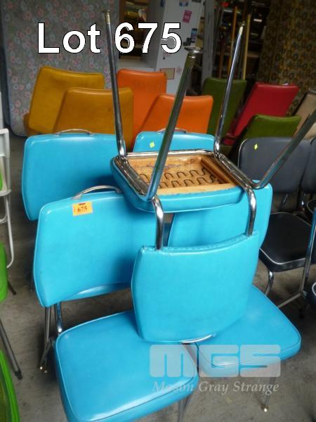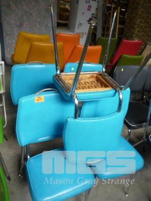 SET OF 5 DECO BLUE VINYL UPHOLSTERED DINING CHAIRS & 4 X RANDOM VINYL CHAIRS