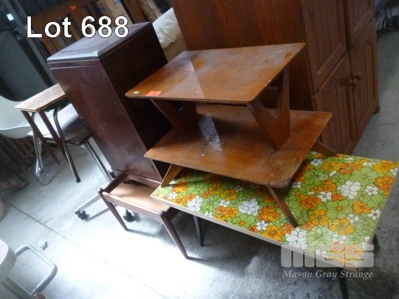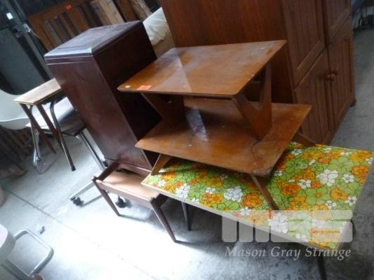 3 x COFFEE TABLES, 2 x SIDE TABLES, SINGLE DOOR CABINET, STOOL & MOBILE TABLE