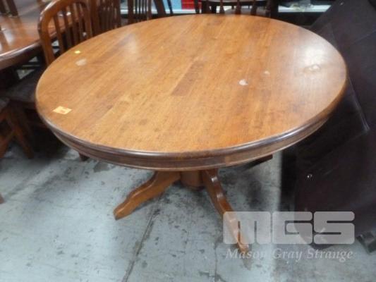 RUBBERWOOD CIRCULAR DINING TABLE ON SINGLE PEDESTAL BASE