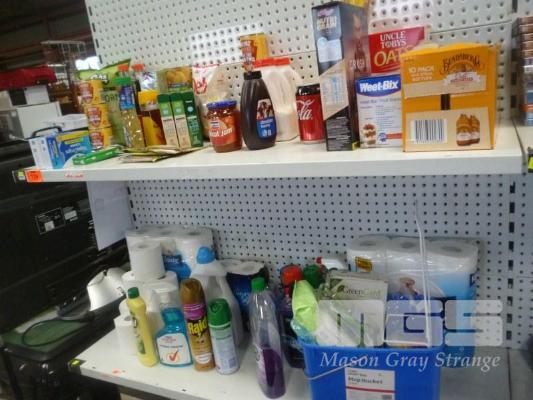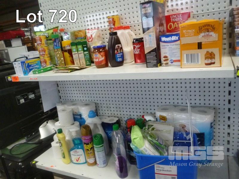 ASSORTED GROCERIES, TOILET PAPER, CLEANING PRODUCTS, ETC, 2 x SHELVES