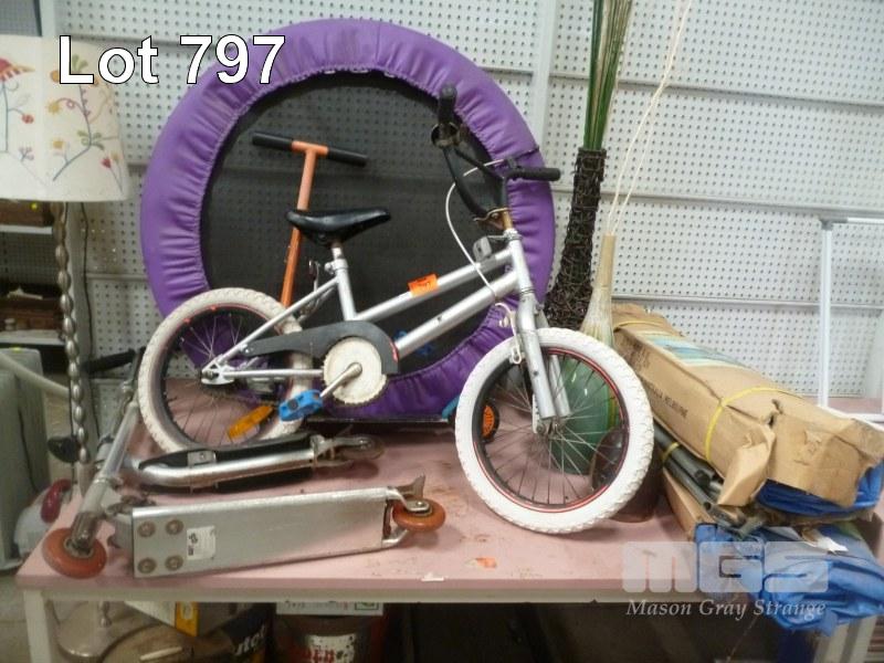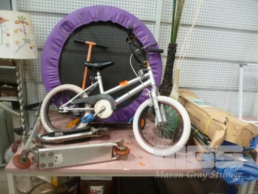 2 x SCREEN HOUSES, KIDS SCOOTERS, BIKE, EXERCISE TRAMPOLINE & 3 x VASES
