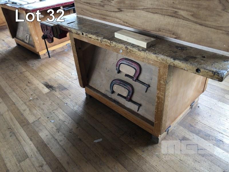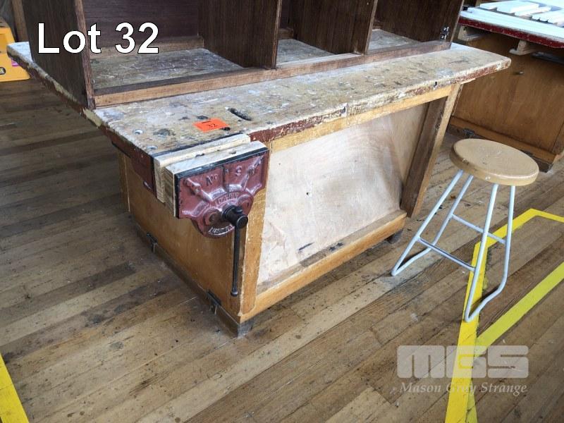 DOUBLE SIDED TIMBER CARPENTERS BENCH WITH 2 x DAWN No9 CARPENTERS VICES, DOUBLE SIDED UNDER BENCH SHADOWBOARD, 1680 x 900 x 40mm