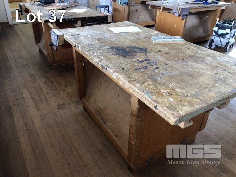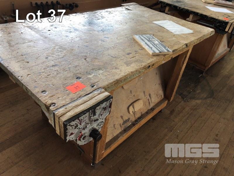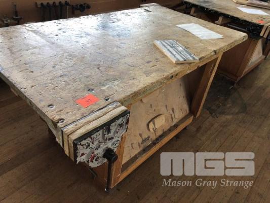 DOUBLE SIDED TIMBER CARPENTERS BENCH WITH 2 x DAWN No9 CARPENTERS VICES, DOUBLE SIDED UNDER BENCH SHADOWBOARD, 1680 x 900 x 40mm