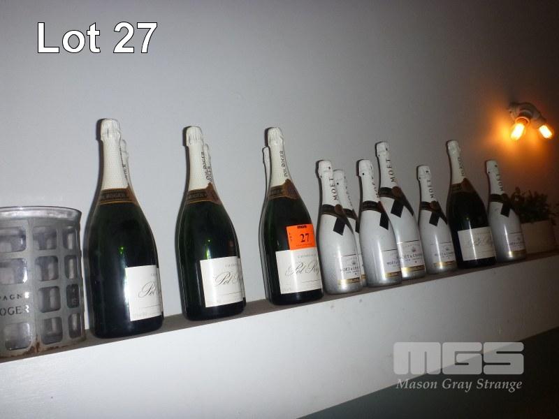 12 x DISPLAY CHAMPAGNE BOTTLES, MOET & CHANDON & POL ROGERS