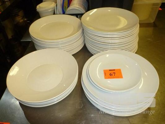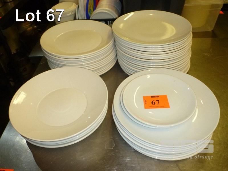 50 (APPROX) x ASSORTED WHITE BOWLS & PLATES, 20 & 30cm DIAMETER