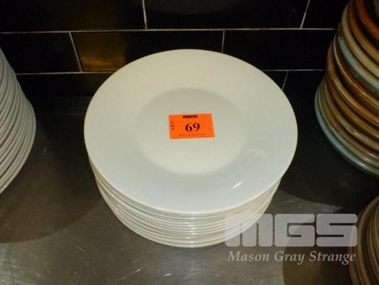 16 x WHITE PLATES, 32cm DIAMETER, DUDSON