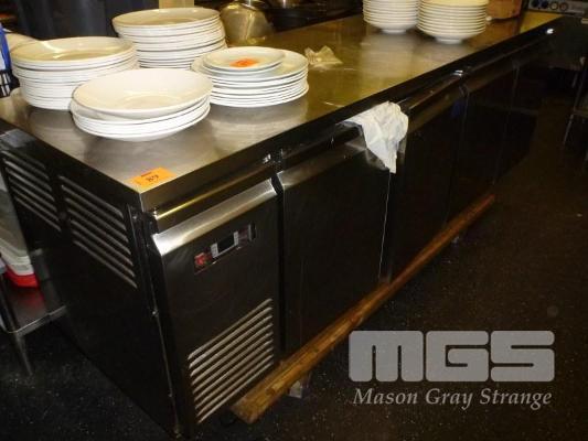MOBILE UNDERBENCH FRIDGE, STUART ICE MAKERS MOD: UB-737PC 4 DOOR 240 x 75cm STAINLESS STEEL CASED, 240V