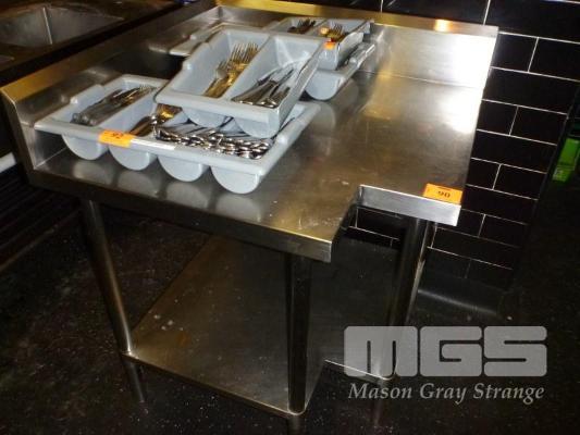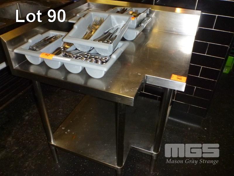 CORNER STAINLESS STEEL BENCH, 2 TIER WITH SPLASHBACK, 90 x 90cm