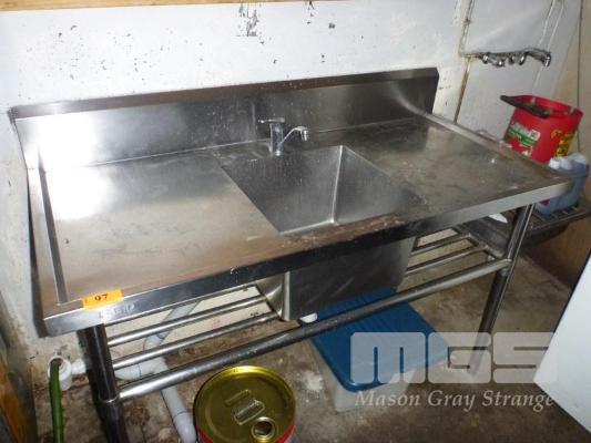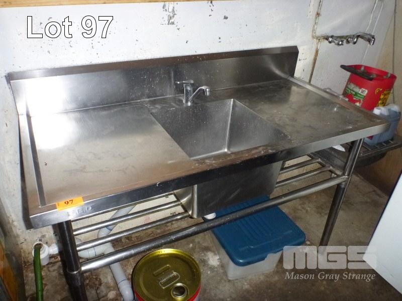 STAINLESS STEEL SINGLE BOWL SINK, 150 x 70cm WITH TAP (PLUMBED, BUYER TO ORGANISE PLUMBER TO DISCONNECT)
