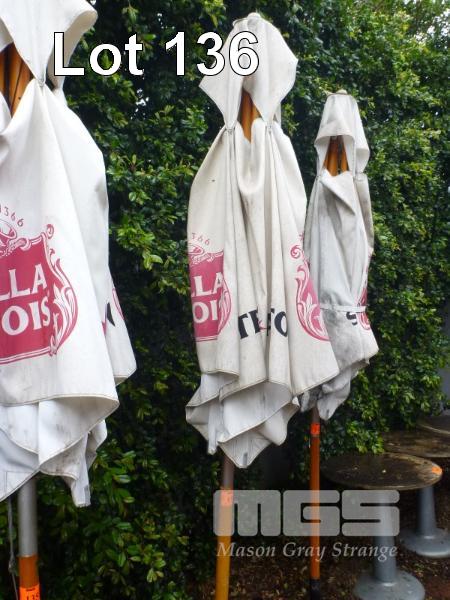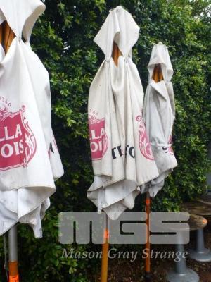 CAFE UMBRELLA, 3m SPAN, STEEL ARTOIS, WITH BASE