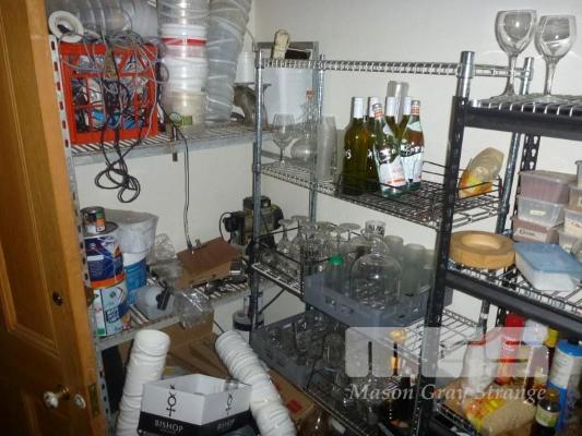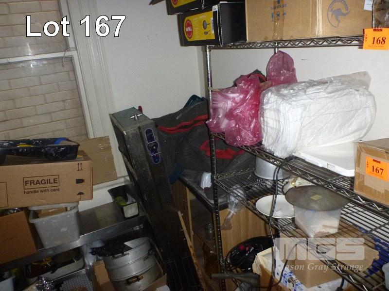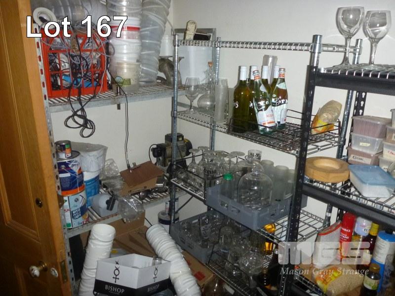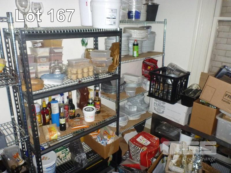 ASSORTED GLASSWARE, CROCKERY & BAKEWARE (CONTENTS OF ROOM, NOT INCLUDING SINK, SHELVES, STAINLESS STEEL BENCH OR BAIN MARIE)