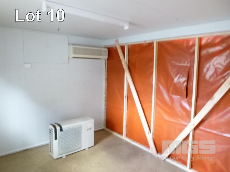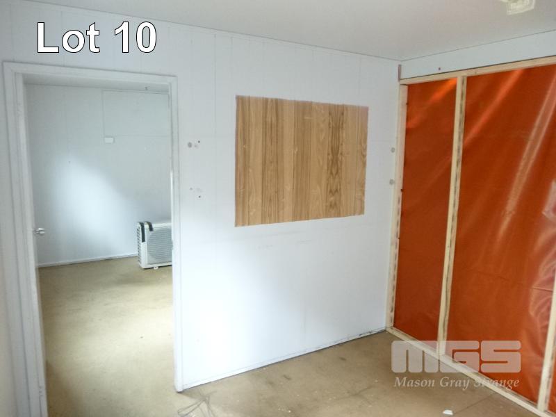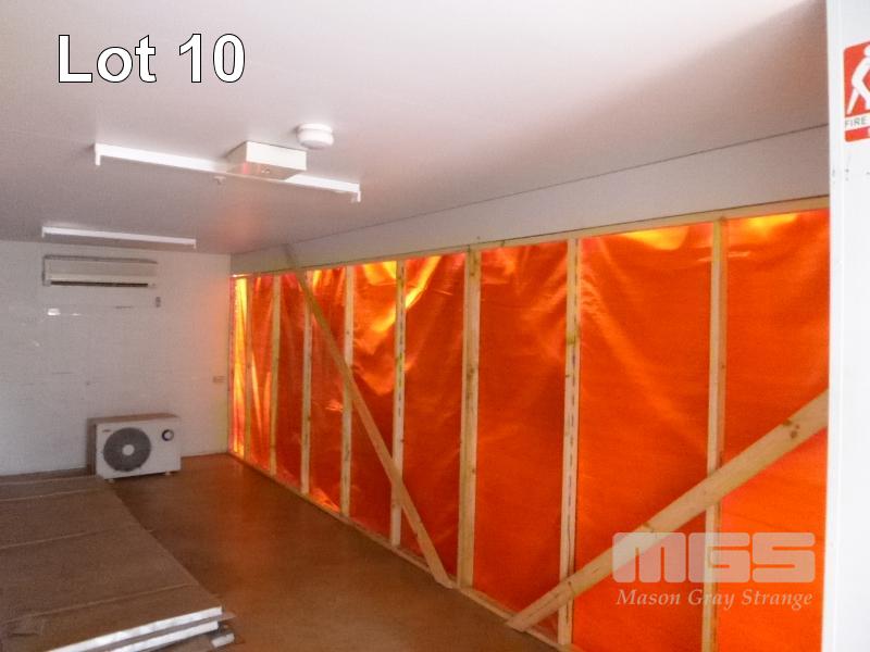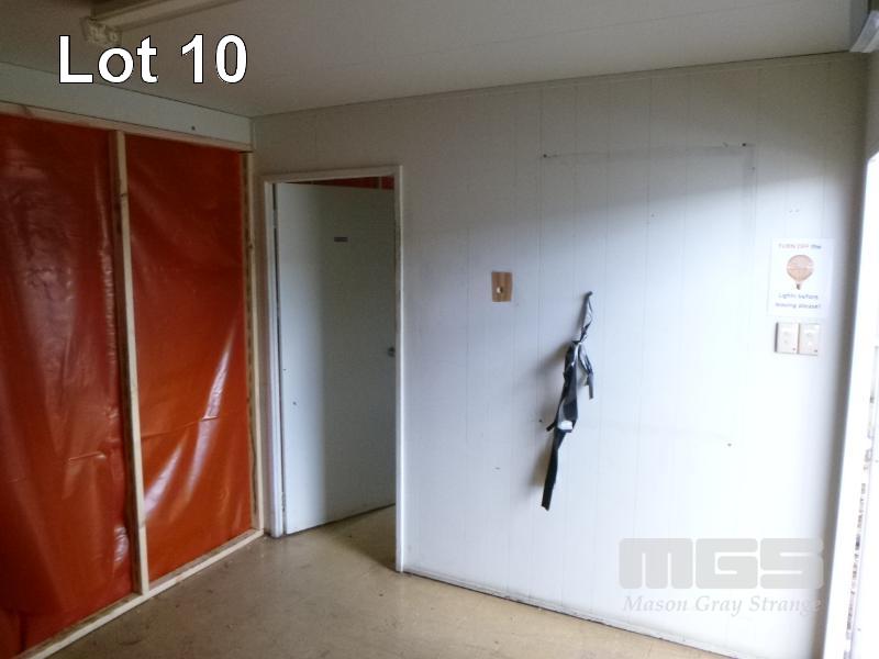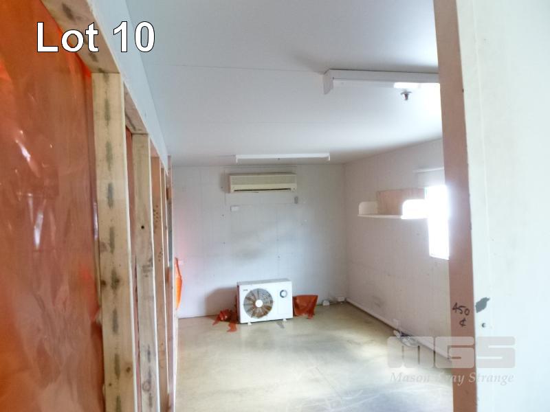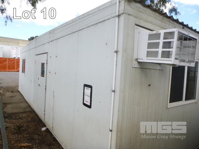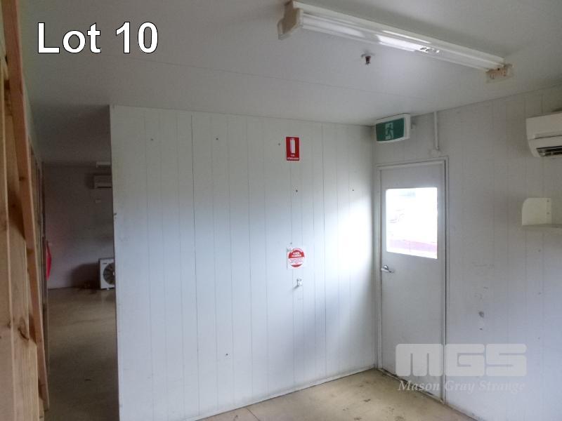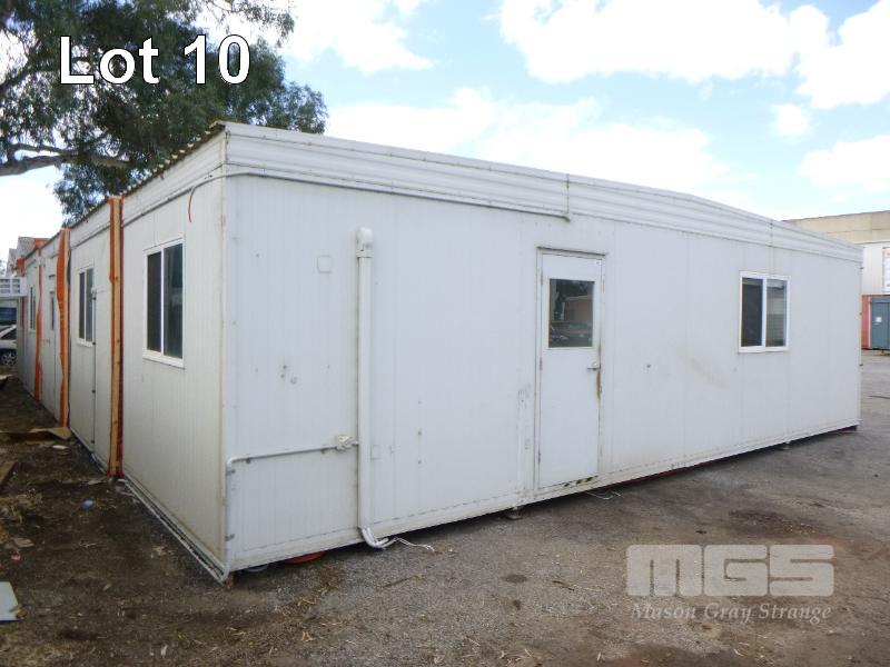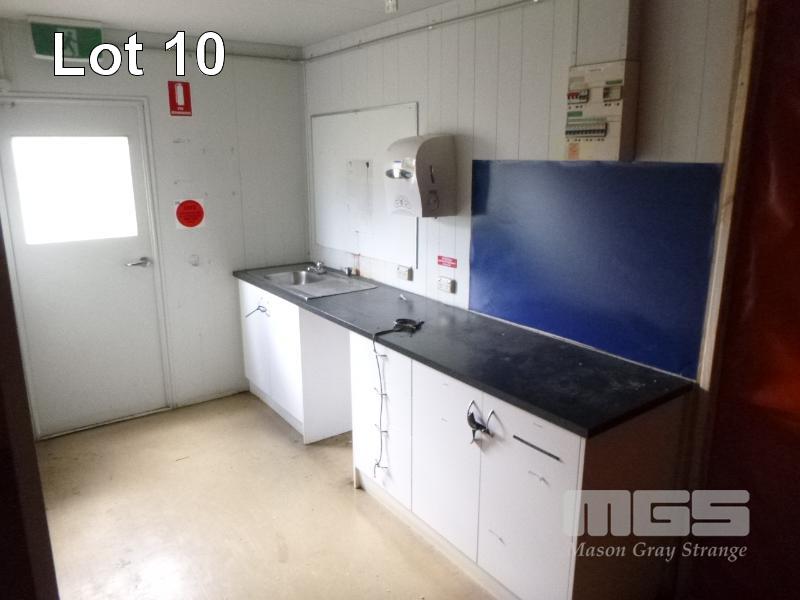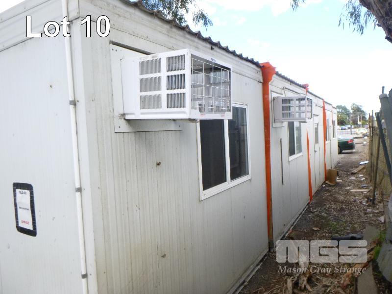 TRANSPORTABLE BUILDING, 5 SECTION, EACH 10 x 3m 2 x SINGLE OFFICE 1 x DOUBLE OFFICE DOUBLE DOOR ENTRY FOYER THROUGH TO OPEN PLAN AREA OVER 3 SECTIONS & KITCHENETTE 6 x WINDOWS SIDE & REAR SINGLE DOOR EXITS A/C, LIGHTING, POWER, DATA CONNECTION & FIRE SPRINKLERS OVERALL 10 x 15m