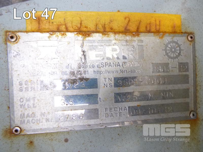 SHIP DAVIT CRANE SYSTEM, FERRI SERIES: 1816 DOM: 10/12 SWL: 3.5T HYDRAULIC POWER PACK, PENDANT CONTROL 415V