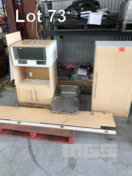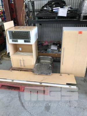 CAMPER KITCHEN CABINETRY, RANGEHOOD & SINGLE BOWL SINK, GLOSS MAPLE LAMINATE